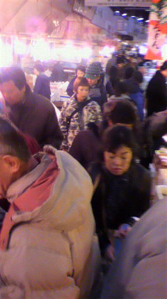これだけごった返しているのに、ターレという立って乗る三輪トラックが平気で行き来してるので面白い。
