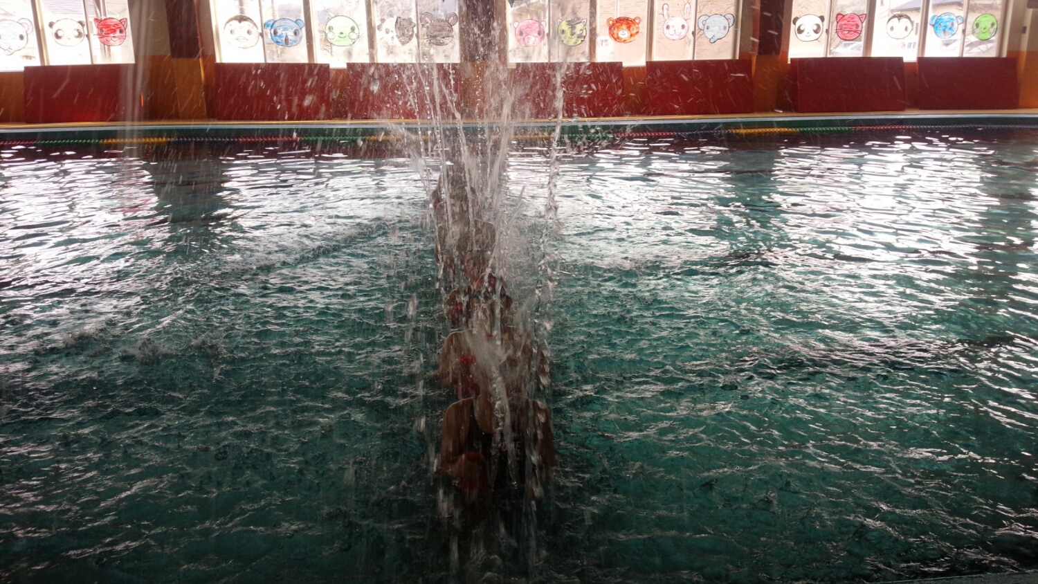 印象に残っているのはプールサイドでやっていた浮き島スライダーです。コーチ達がとても格好よく滑るので僕もやりました!
