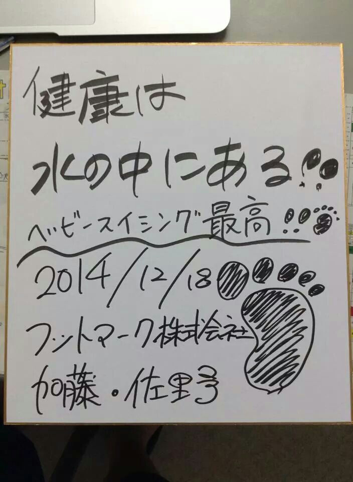 今回は新しいベビー用の水着の紹介と、さらに今後ベビースイミングが発展するように、用品の会社としてできることはないかと見学に来られました。とても熱心で見習わなければなりませんね。フジジもテストをなくしたり、コーチにあだ名をつけたり、レベルアップ制度をつくったりと、賞品開発は結構好きでして、フットマークさんと手を組みながらベビースイミングの発展を考えていければと思います。