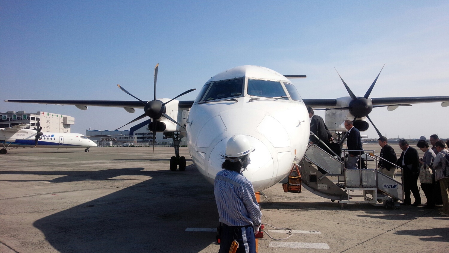 帰りのヒコーキはプロペラ機。