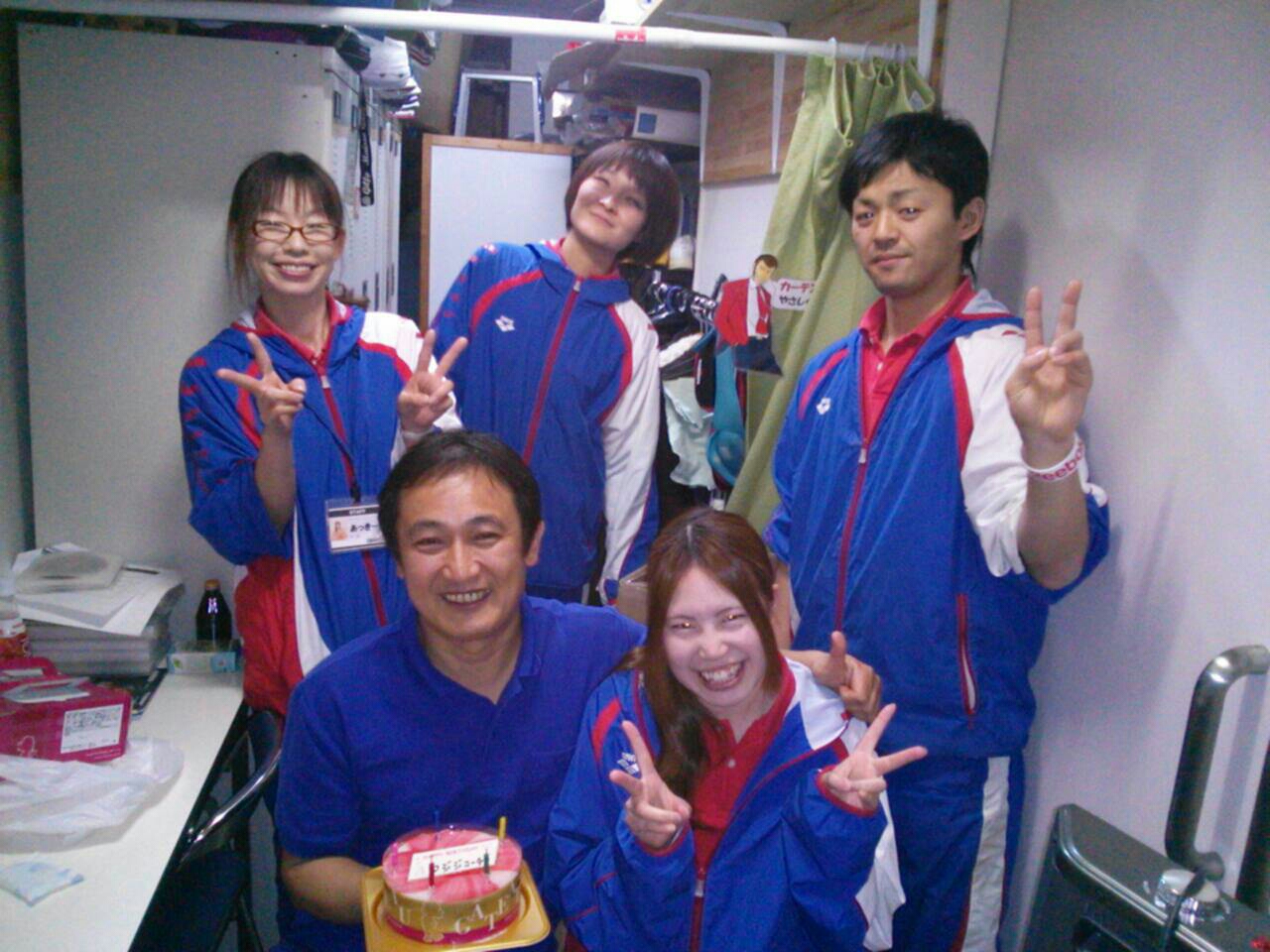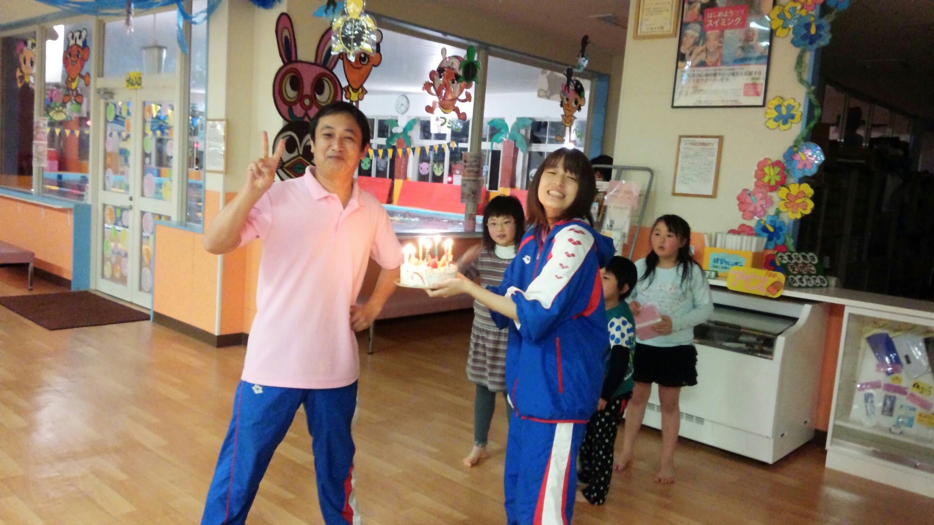 そして先ほどギャラリーの選手コースのママたちも巻き込んで、ハッピィバースデー♪を歌っていただきました。午前中の水中改善コースでは無理やり歌ってもらいました(笑)