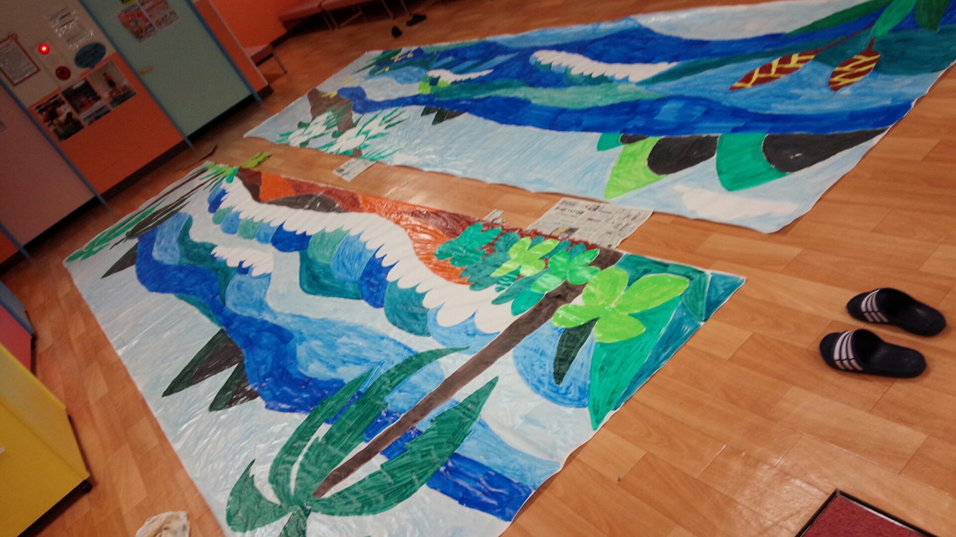 子どもたちが帰ると、このところ毎日ピュアのギャラリーは作業場と変わります。