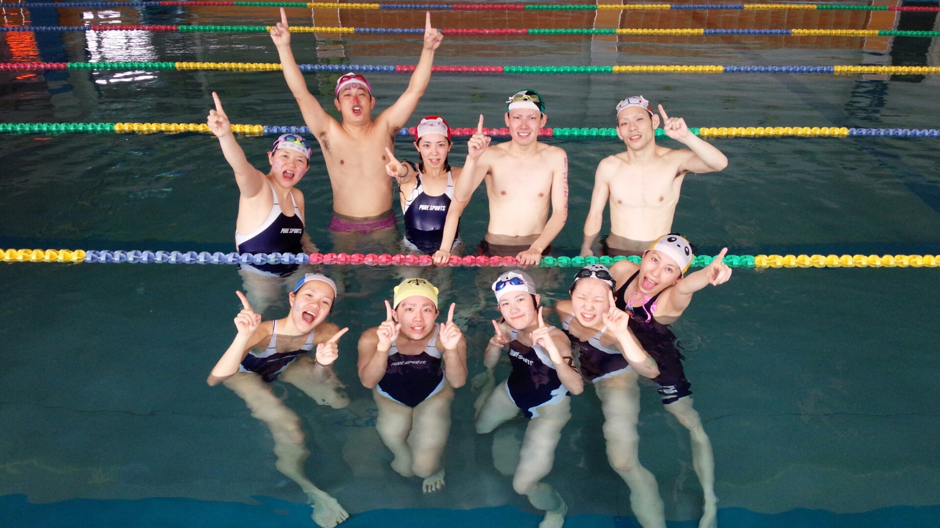 バタフライ1000m、背泳ぎ1000m、平泳ぎ1000m、自由形1000mをコーチたちで25mずつダッシュで泳ぐわけです。制限時間は60分以内。25mの平均タイムを22秒くらいで泳がなくてはいけないのでみんな真剣です。