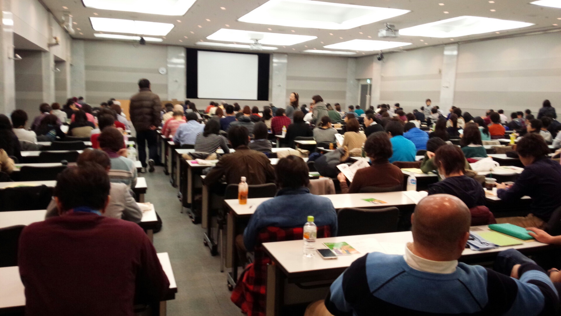 狭い会場に約75名。九州からの参加者もいて、フジジもちょっと緊張しましたが、そこは大阪生まれのフジジですから、昼食後であるにもかかわらず、寝る人もなく、楽しく終えることができました。