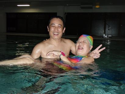 金澤先生はなんと76才。日本で妊婦水泳が始まったときから今までコーチをされています。その先生はとってもおしゃれ。そしてとっても元気。今でも現役です。