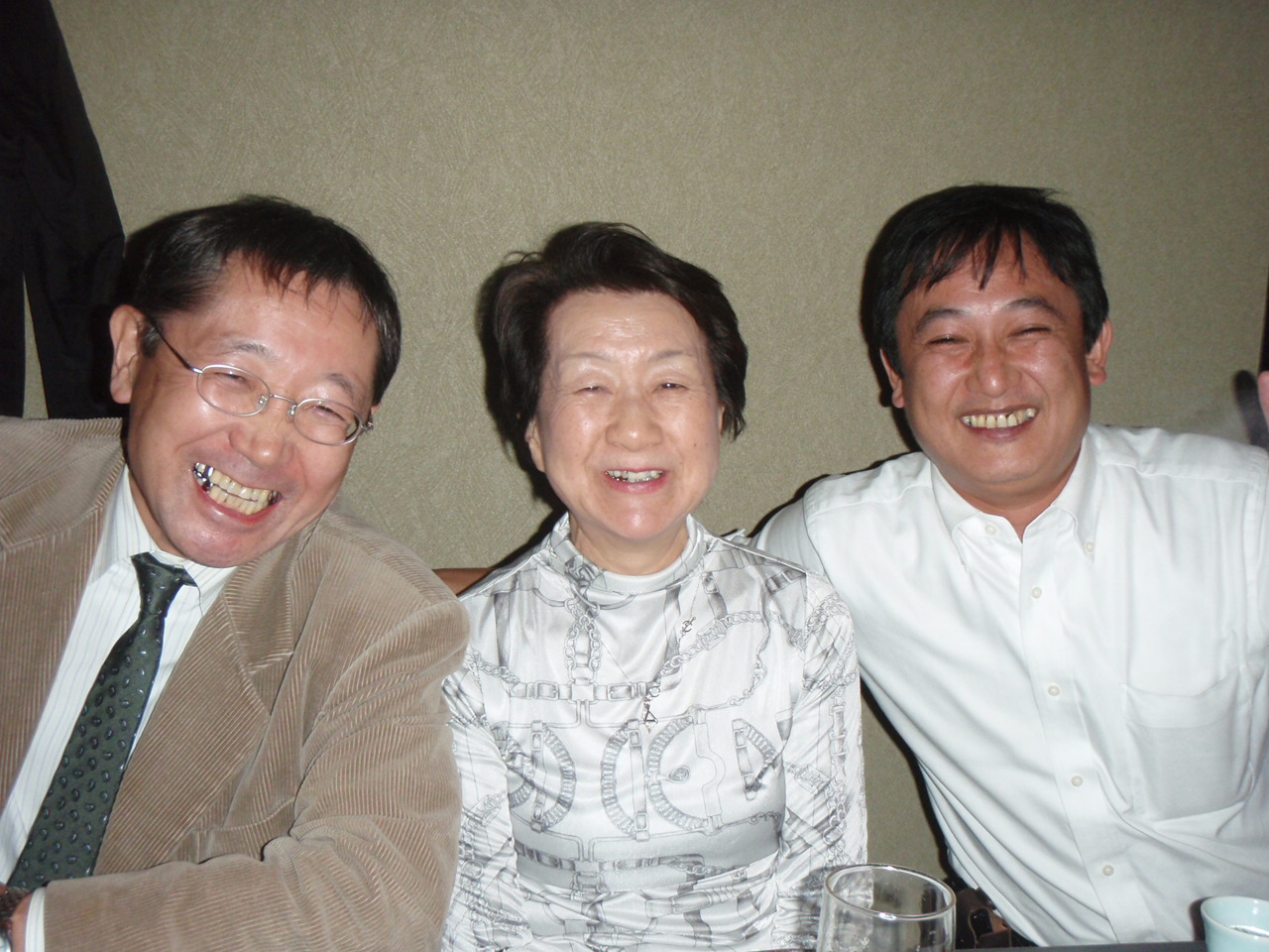 真中は講師仲間で九州支部の竹内先生。今回フジジに希少な芋焼酎をもってきてくださいました。