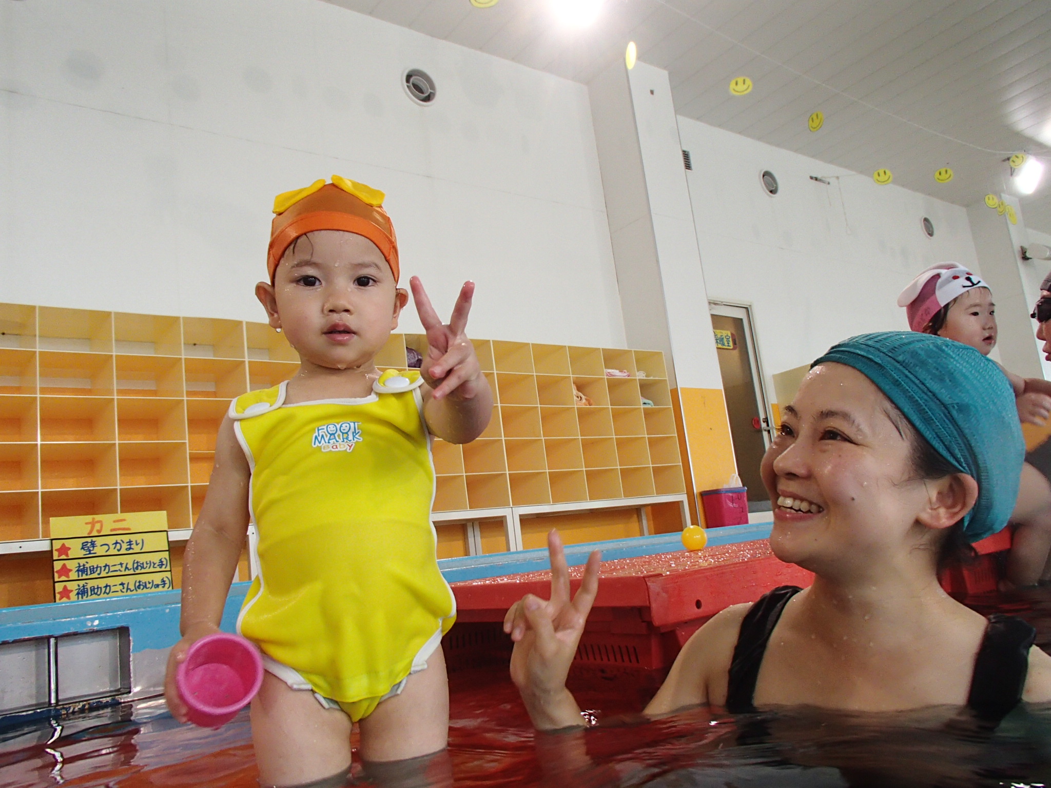 いつもとは違うプールなのに泣くこともなく、楽しんでくれたようです。