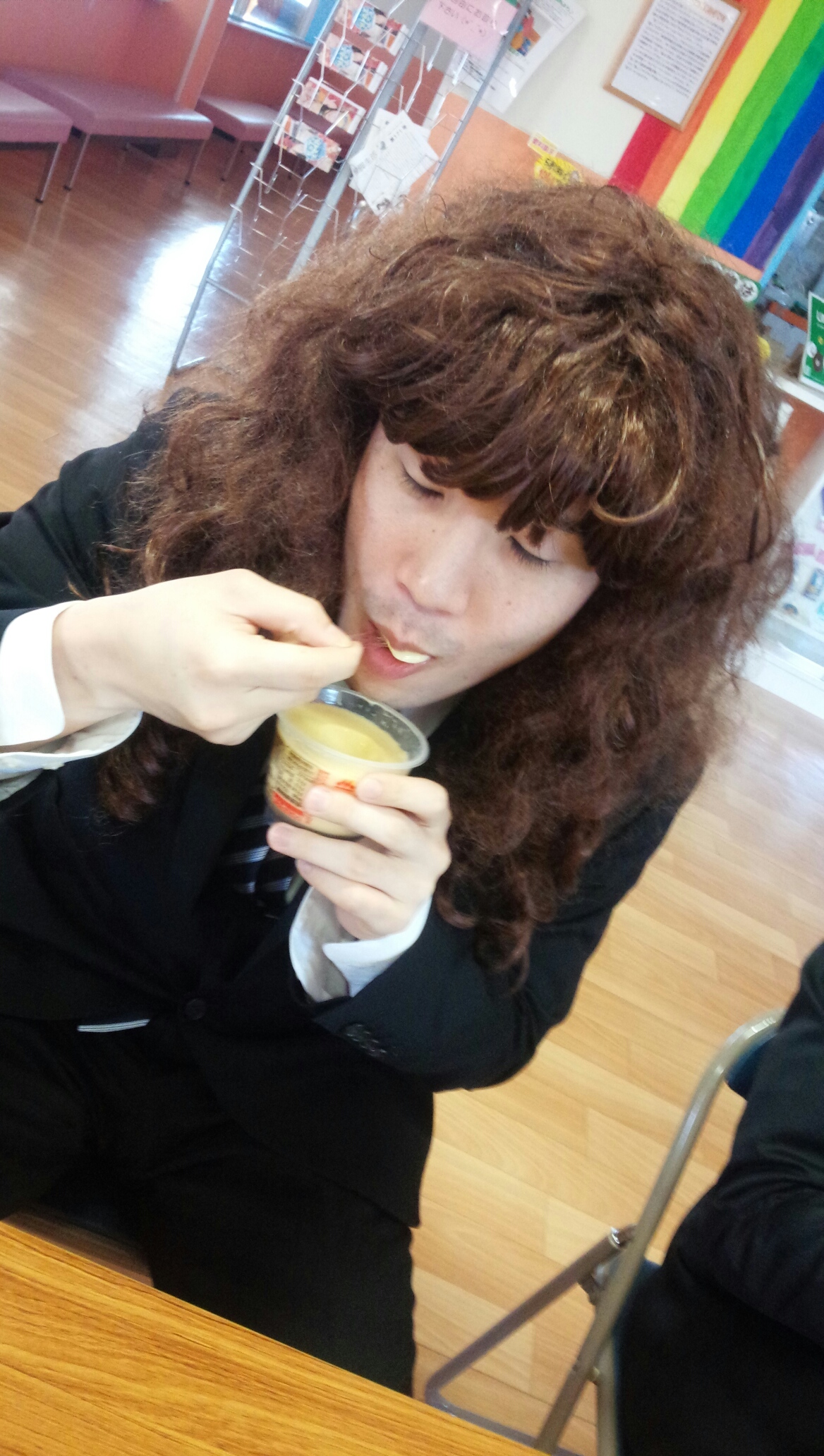 ながっちはかつらをかぶってスイーツ系女子を演じながら。