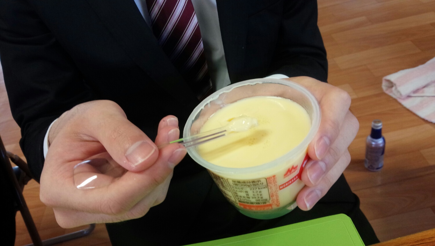 今朝はフジジの差し入れのプリンをいかに楽しく食べれるか・・という勉強会。